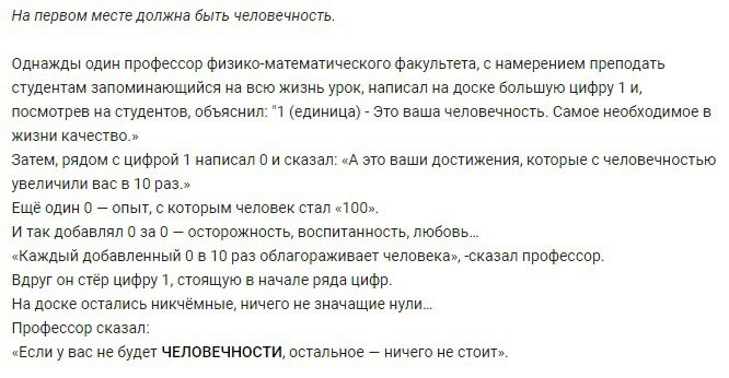 Что мы без такого качества , как человечность? По сути - ничего. Можно иметь много различных качеств, тоже достойных, но если ты лишен человечности.... все теряется.