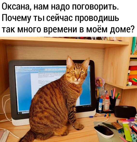 Не отстают и братья наши меньшие). И мои пять котов тоже🤣. Ну, суббота и воскресенье "когда все дома" - это у них вызывает понимание, привыкли. Когда пошел третий, затем четвертый день, кошачьи морды начали выражать недоумение:" а чегой-то вы здесь все делаете?"- ни побегать нам, ни побезобразничать:на шторах не виси, пакетом не шурши, друг друга не "мутузь". Кошмар! А потом эти наглые кошачьи морды поняли преимущество того,"когда все дома"! Обычно, их кормление происходило так: утром и вечером, и все, ну на ночь "сухой"( кошатники меня поймут). А теперь график сбился! Ура! Теперь они живут по принципу, кто в кухню вошёл, к тому вся гурьба и бежит, типа "жрать давай". Ну народ то не в курсе: кормлены ли хвостатые, ибо на их наглых мордах выражение "я не ел пять дней", покорми меня немедленно! На вопрос , а что вас не кормили, получали ответ: нет, нет, никто и крошечки не дал! Котов голодом морят. Правда, это кошачье "блаженство,когда все дают поесть в любое время" закончилось через пару дней. Когда у мужа кончилось терпение и "грозно вопросил": "почему коты постоянно голодные, их что, никто кроме меня не кормит?" Ну тут все и выяснилось🤣🤣🤣кормили котов все! И не один раз на дню! Причем эти гады , когда на кухне вся семья и не появлялись, а "отлавливали" нас по одному. Ну сейчас все наладилось: кто первый встал - кормит, затем на всякий случай пишет записку типа " коты сыты, не верьте им, они врут!"( на тот случай, если этот первый подремать ляжет или на удаленку засядет), а вечером по расписанию или по вопросу " кто-нибудь котов кормил, а то они готовы в голодный обморок упасть". Теперь коты "затаились", поняли, что "райская жизнь" закончилась и,видимо, вынашивают новую идею, как нас "двуногих" еще обдурить😆😆😆