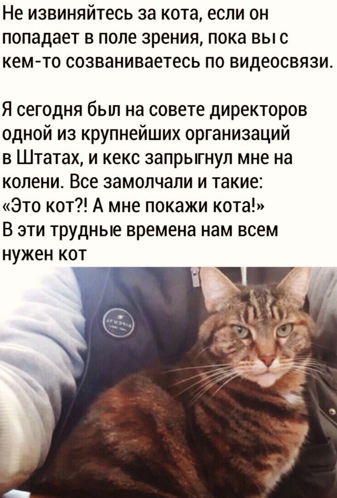 На сегодняшний день это случается очень часто! А вы знаете, такие ситуации вносят своеобразную разрядку и заряжает положительными эмоциями. Я думаю, что у многих есть домашние животные , которые " помогают" работать! И не важно: начальник ты или подчиненный. Даже происходит своеобразное единение, а это очень важно! Очень важно знать, что мы все вместе. И коты тоже, а как же без них!