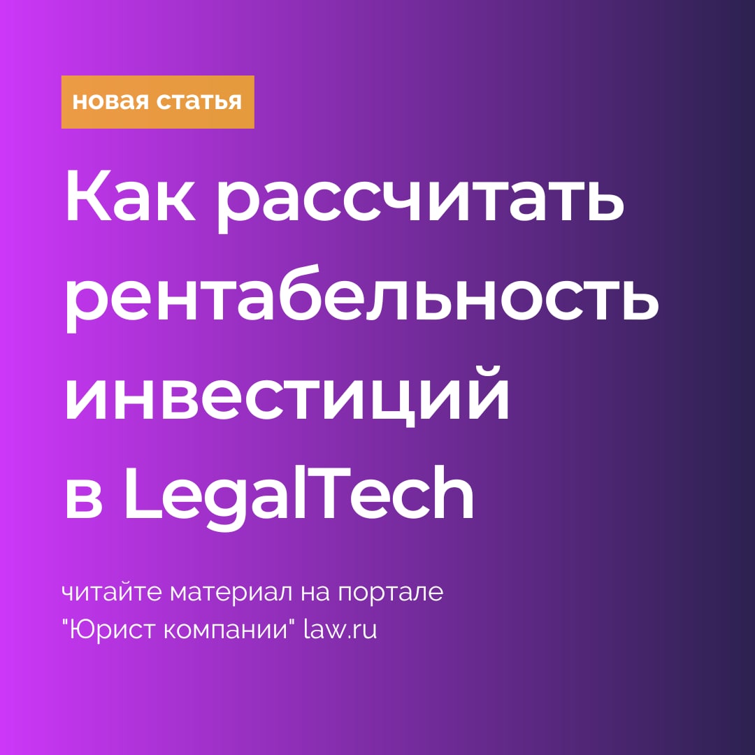 Читайте материал по ссылке: https://www.law.ru/blog/22939-kak-rasschitat-rentabelnost-investitsiy-v-legaltech-resheniya