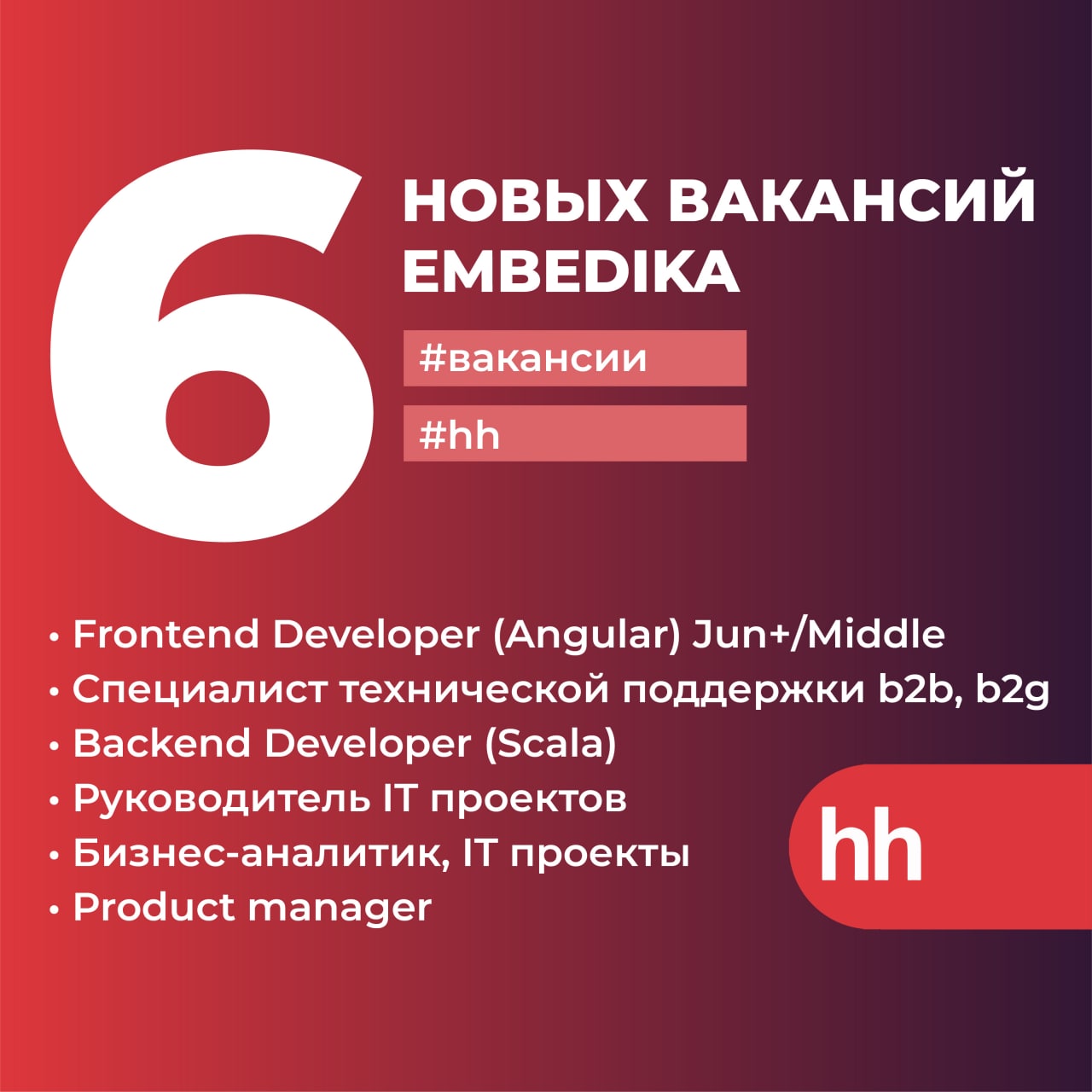 Следите за вакансиями на нашей странице hh