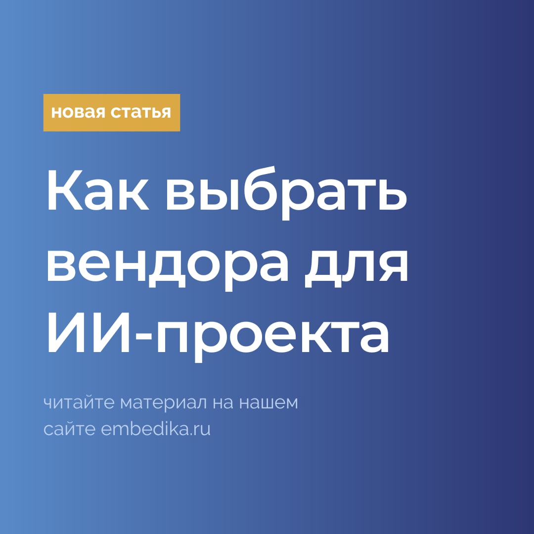 Мы подготовили этот материал, чтобы помочь руководителям проектов и департаментов в поиске и выборе вендоров ИТ-решений на базе ИИ. В этой статье: как распределяются роли при реализации проекта, какими параметрами руководствоваться при выборе компании-разработчика и о каких рисках стоить помнить: https://embedika.ru/blog/kak-vyibrat-vendora