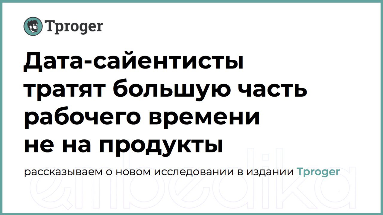 Это глобальная проблема: 80% всех данных в мире не структурированы. По следам исследования мы написали статью с разбором проблемы качества исходных данных — она вышла в издании Tproger. Прочитать ее можно здесь.