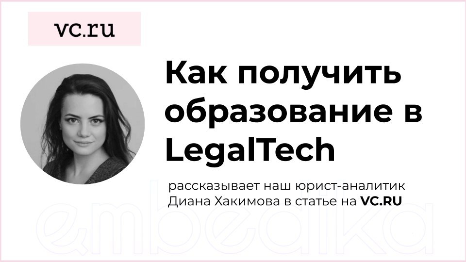 Наш юрист-аналитик Диана Хакимова написала колонку для vc.ru об образовании в LegalTech.