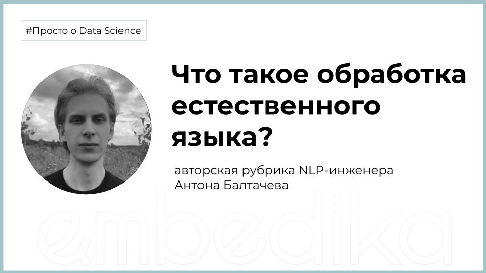 Встречайте вторую авторскую рубрику — мы назвали ее «Просто о Data Science». В ней наш NLP-инженер Антон Балтачев на примере обработки естественного языка объясняет, как устроена наука о данных.