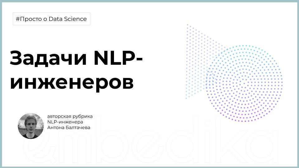 В новом выпуске рубрики «Просто о Data Science» Антона Балтачева разберем задачи, которые стоят перед NLP-инженерами.