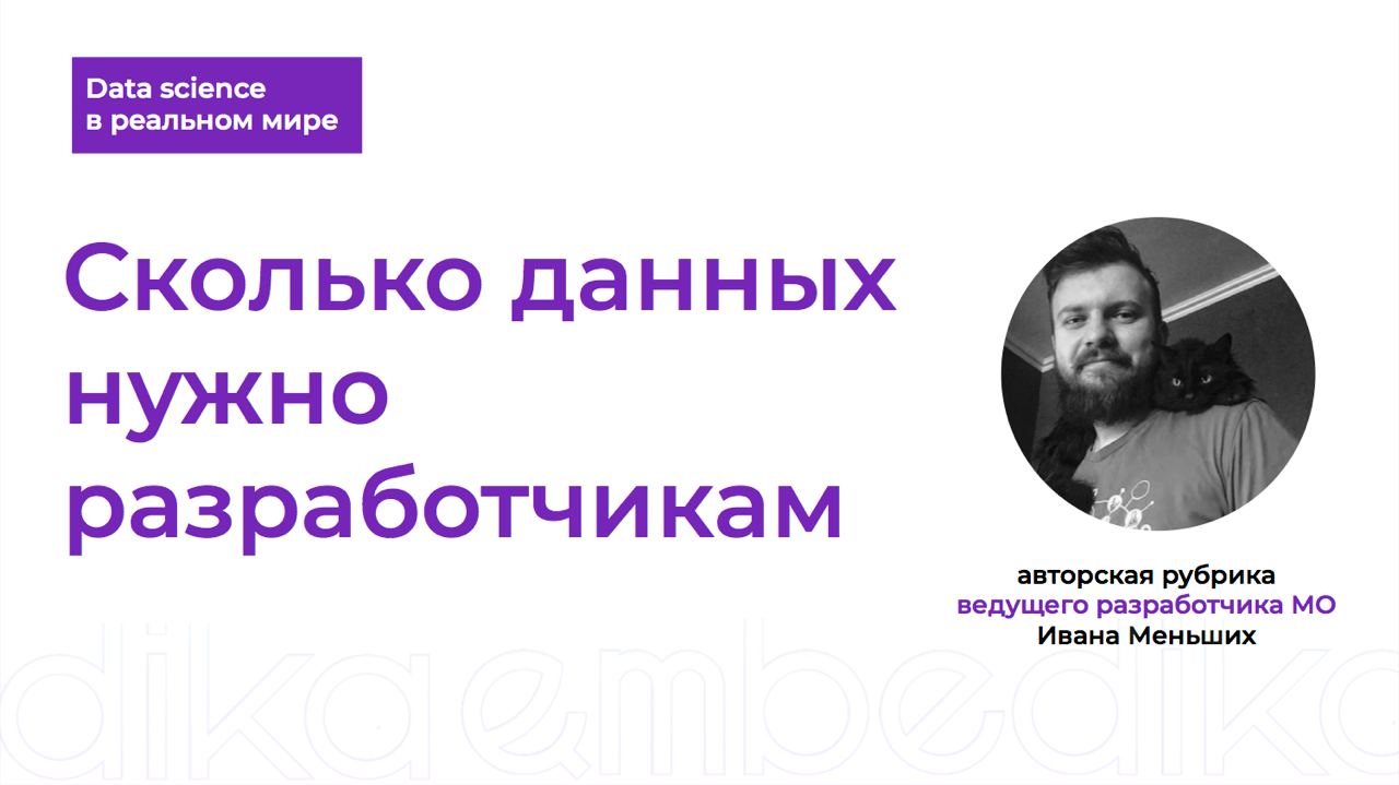 От разработчиков часто можно услышать, что успех решения напрямую зависит от количества и качества исходных данных. Но как понять, сколько данных нужно и каких? Рассказывает ведущий разработчик машинного обучения Иван Меньших в новом выпуске авторской колонки «Data science в реальном мире».