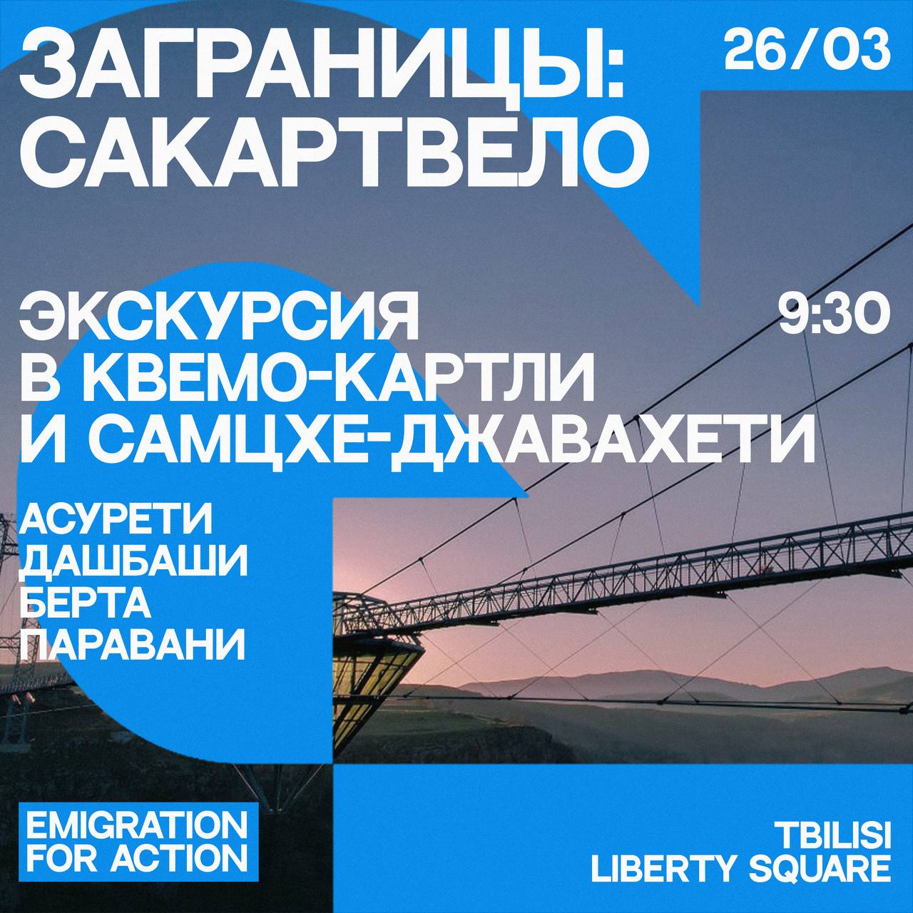 Также напоминаем, что в воскресенье 26 марта мы поедем на экскурсию сразу в два региона Грузии, а вечером этого же дня у нас пройдёт встреча разговорного клуба на английском языке Speaking for action.