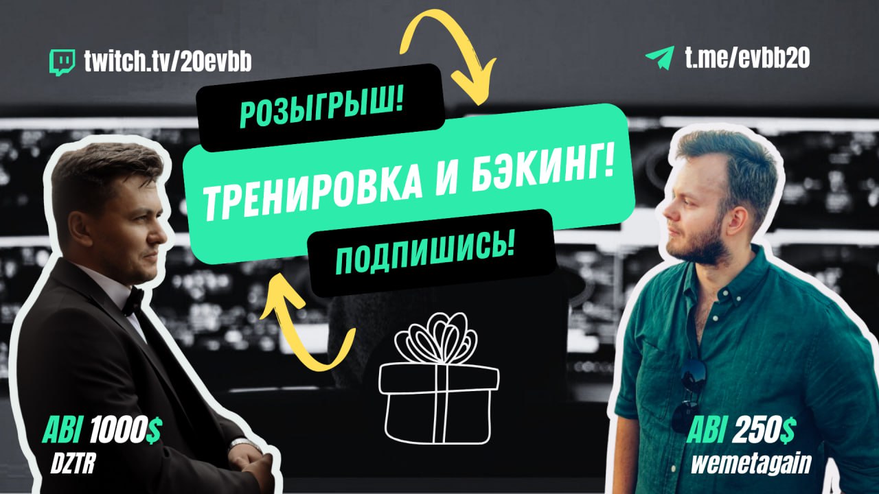 Так же напомним, что сегодня в 19-00 на нашем🎮 Twitch 20EVBB канале пройдет розыгрыш тренировки с Егором DZTR а так же возможность выиграть бэкинг (мы выкупим ваше участие) на турниры в руме PokerOk