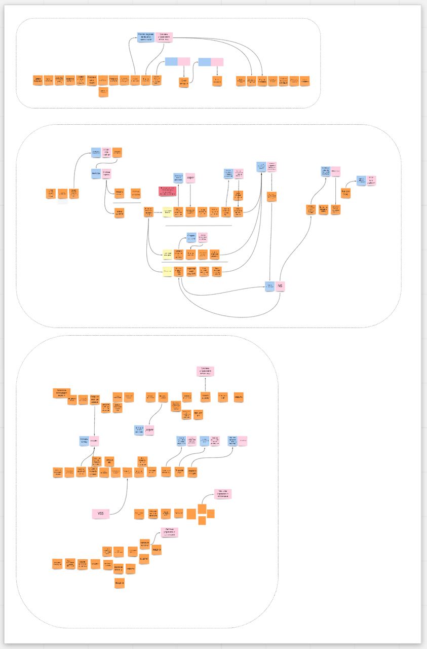 Ниже пример ретроспективы полугодового проекта. Event Storming помог увидеть отдаленые причины, первичные события, которые в итоге привели к тяжелому релизу. Мы склонны видеть симптомы, снимать симптоматическую «боль», чуть реже нам свойственно и лечить болезнь. Что действительно тяжело, так это оследить каким образом пришли к болезни.