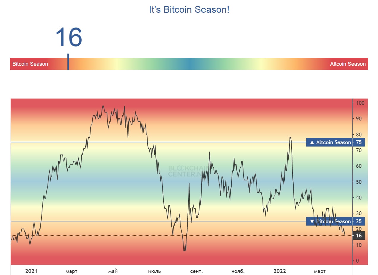 Биткоин показывает альткоинам кто тут главный, а на рынок вернулся страх, пока маленький (34 балла) 😳