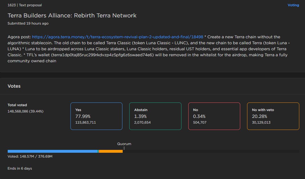 🔹Сообщество Terra проголосовало за перезапуск сети Terra 2.0 и компенсацию пострадавшим