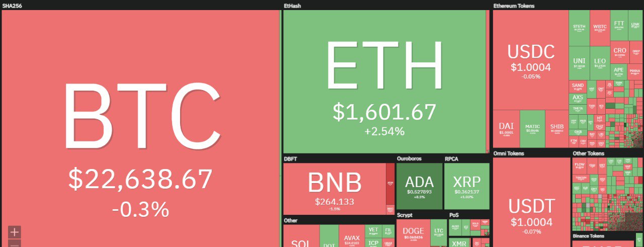 🔹С тех пор как биткоин достиг максимума в $24 276, он демонстрирует все более низкие минимумы, и сейчас торгуется на отметке $21 962.