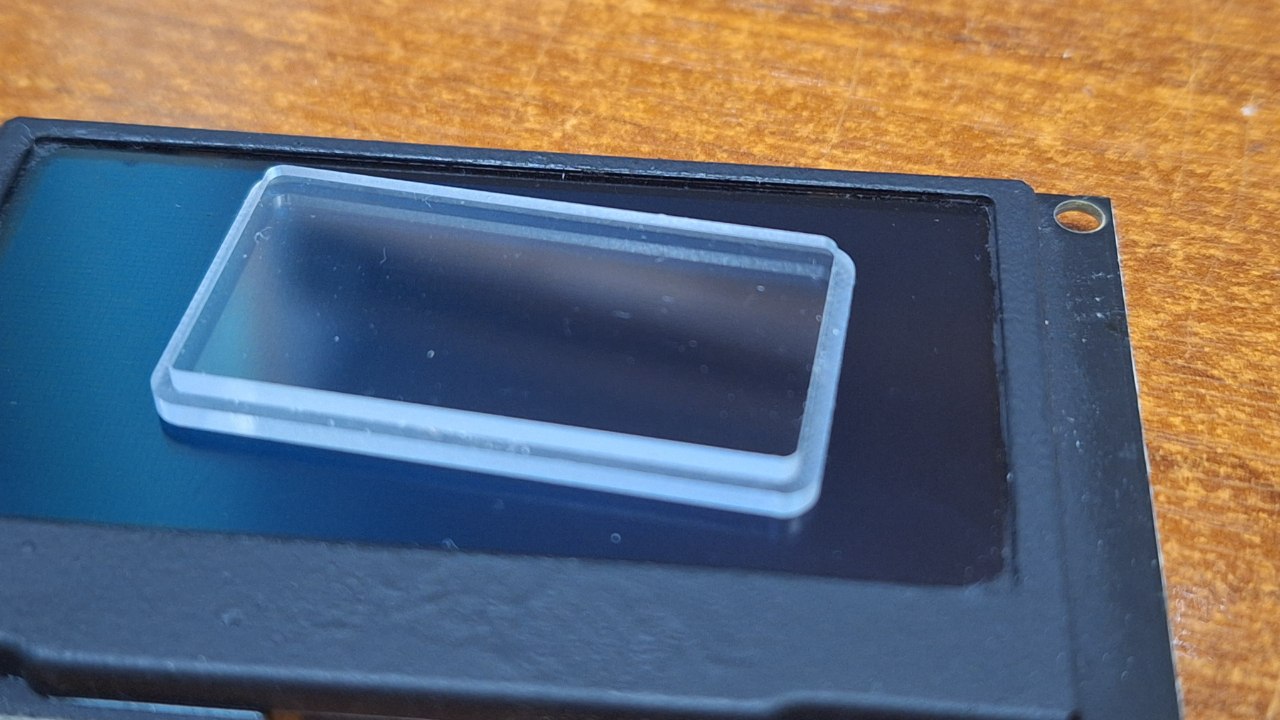 Буквально пару дней назад закончил последний пункт, из того что было необходимо для версии 1.0. Готовлю код к релизу, убираю мусор лишний. А ещё продвинулось дело с последней необходимой деталью для корпуса - защитным стеклом для экрана. Прямо сейчас большая партия в производстве. Ниже фотография процесса и тестового образца.