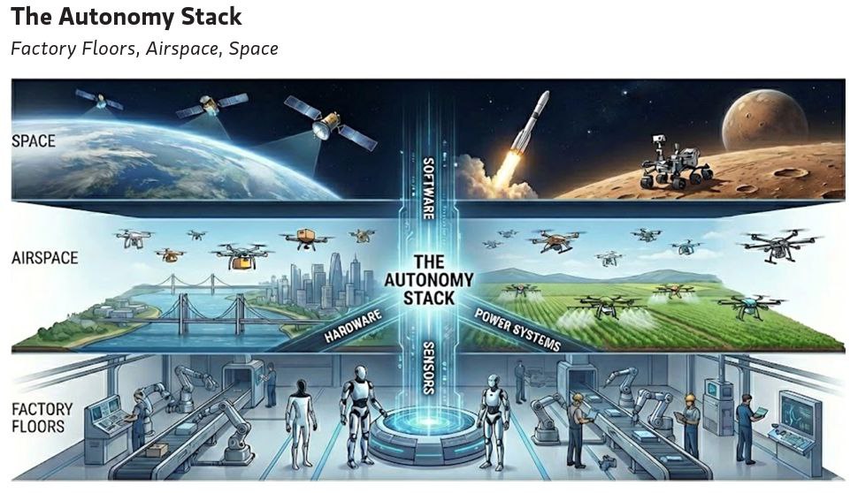 P.S. Бонусом - завораживающая картинка из отчета Morgan Stanley: “Автономность - не нишевая вертикаль, а горизонтальный слой, который объединяет «железо», софт, датчики и энергосистемы. Это момент, когда AI перестаёт только анализировать экономику и начинает управлять ею - на земле, в воздухе и в космосе”. Тот факт, что в инвестиционных отчетах крупной финансовой компании мы находим целый раздел, посвященный технологиям - яркий признак того, насколько сильно AI начинает влиять на прогнозирование будущего, включая инвестиционное.