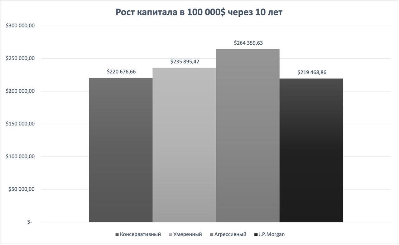 Вот уже который год я традиционно сравниваю доходность своих портфелей с “классикой” от J.P.Morgan. Обычно портфель от J.P.Morgan показывает результаты хуже умеренного и агрессивного портфелей, но лучше консервативного, что логично. Однако за прошлый год даже консервативный портфель обогнал портфель от J.P.Morgan - и по итогам 2025 года, и по итогам за 10 лет!