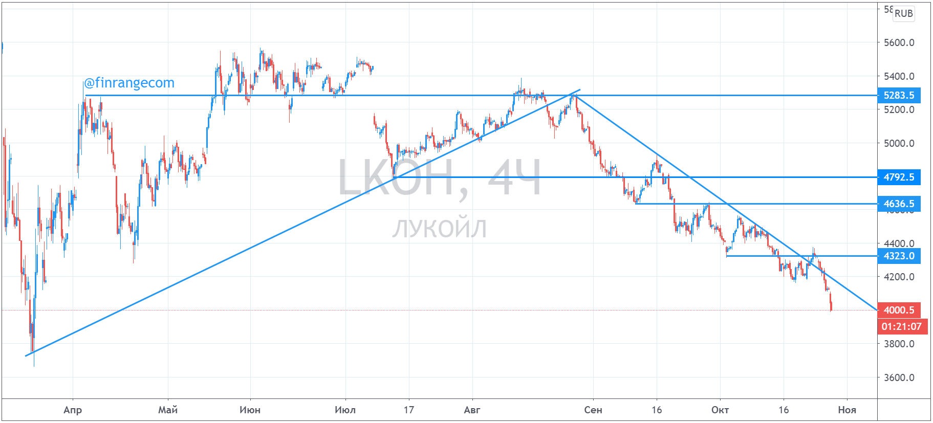 📉Лукойл всё-таки дошёл до 4000 руб.