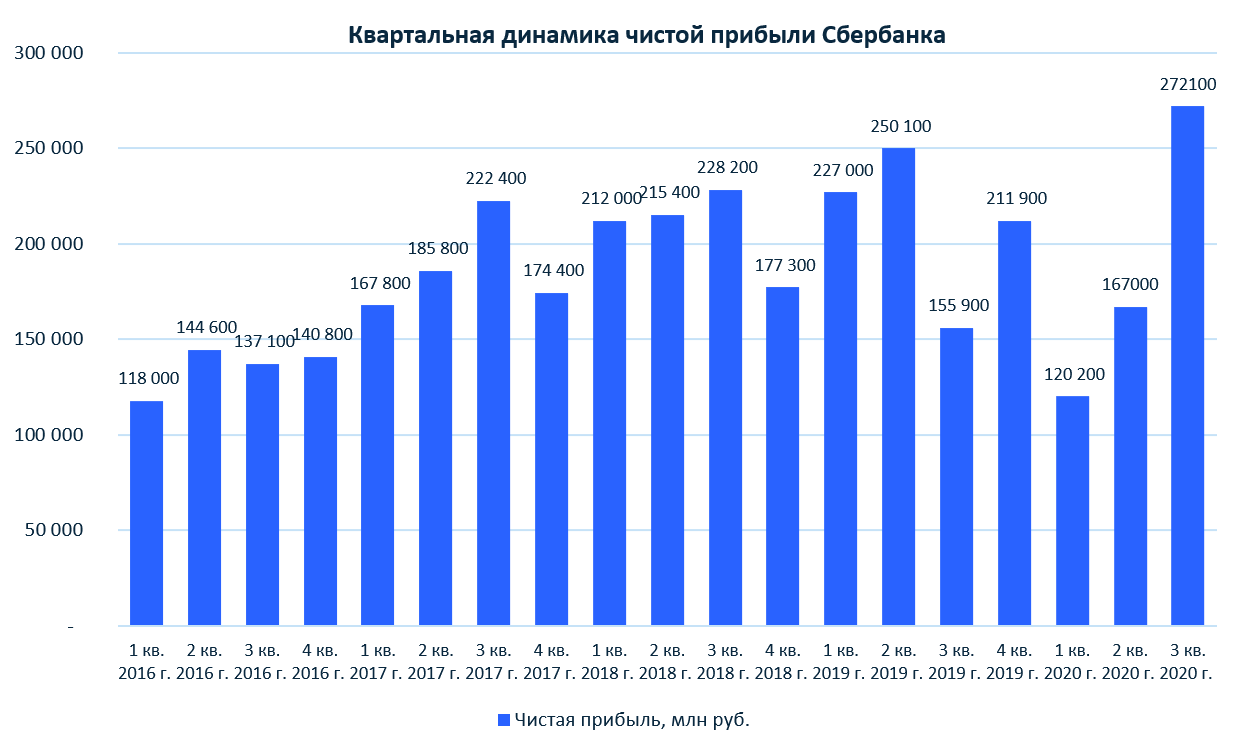 Таким образом, чистая прибыль за 9 мес. 2020 г. составила 558,6 млрд руб. Если бы не создание резервов в размере 327,8 млрд руб. под невыплаты по кредитам со стороны физических и юридических лиц из-за влияния коронавируса, результаты были бы существенно выше.