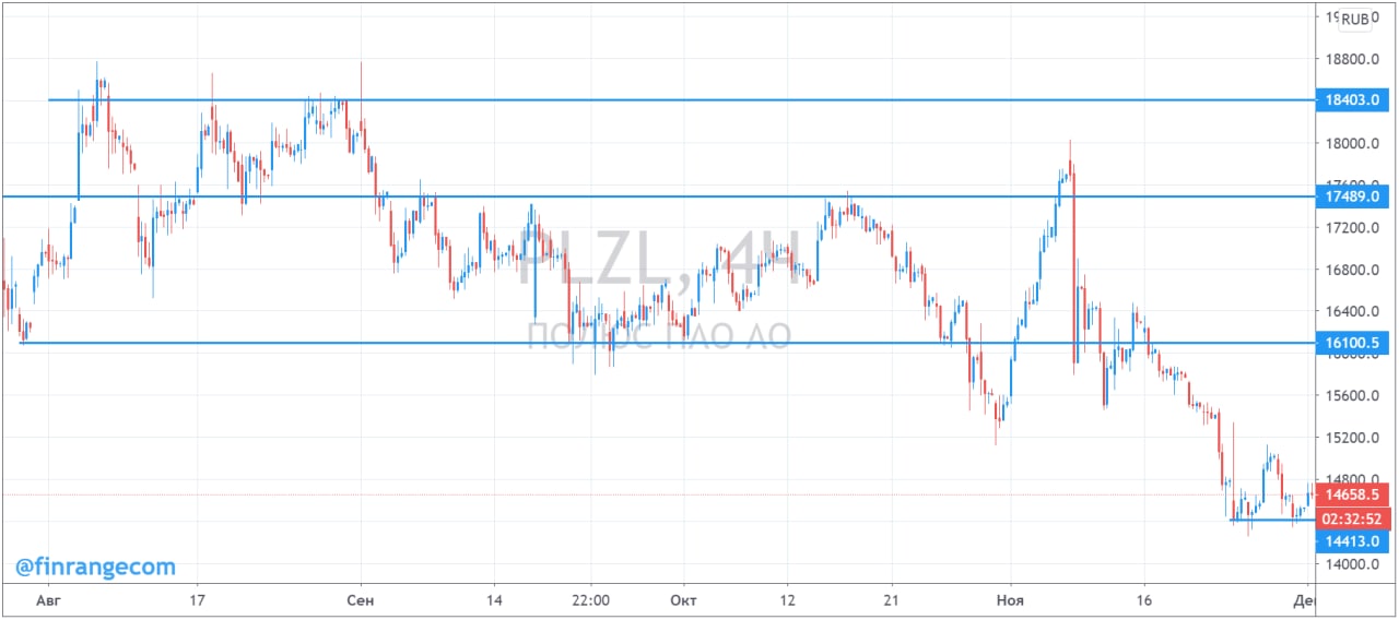 Кроме того, хотим отметить, что Полюс остаётся фундаментально сильной компанией, акции скорректировались только вслед за золотом. При этом, золотодобытчик показал сильные финансовые результаты за III кв. 2020 г. по МСФО на фоне девальвации рубля и более высоких цен на золото в текущем квартале по сравнению с III кв. 2019 г.