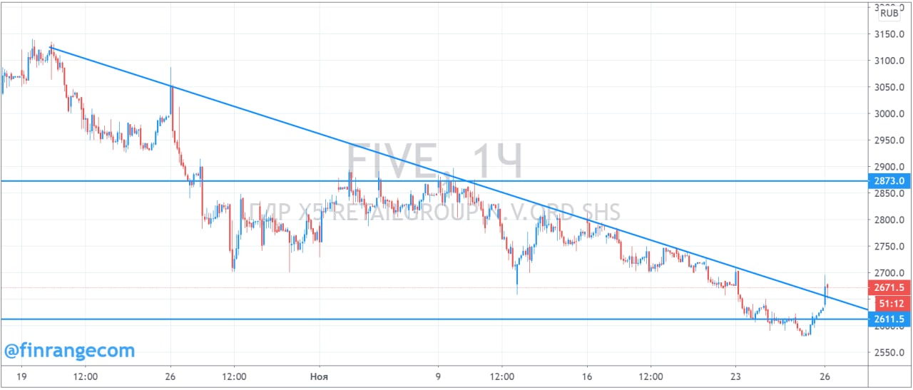 Кроме того, на прошлой неделе наблюдательный совет X5 одобрил изменения в дивидендной политике и рекомендовал выплатить дивиденды за 9 мес. 2020 г. в размере 73,645 руб. на одну акцию. Текущая дивидендная доходность 2,75%. Дата закрытия реестра назначена на 18 декабря 2020 г.