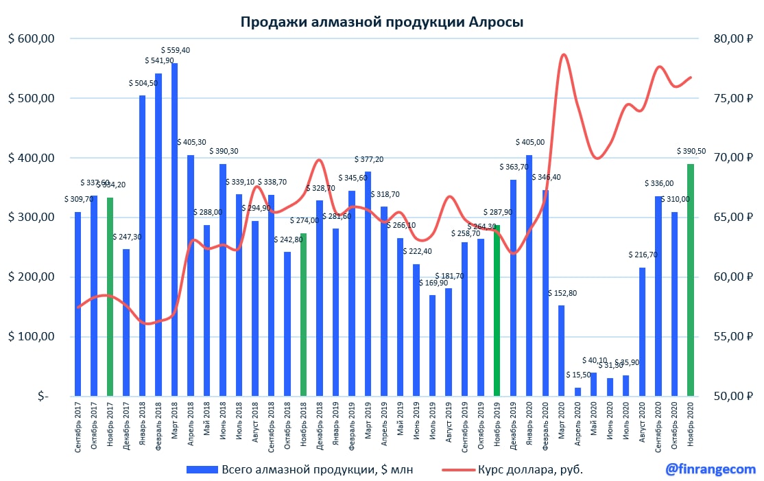 📊АЛРОСА: рекордные продажи за ноябрь 2020 г.