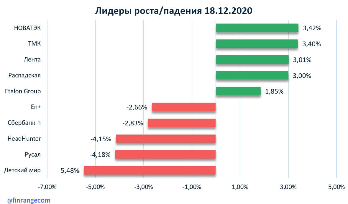 Последний зелёный день. Последний день торгов в этом году российский рынок закрывает на положительной территории. Большинство акций сегодня демонстрируют положительную динамику, индекс Московской биржи растёт в основном за счёт таких голубых фишек, как: НОВАТЭК, Яндекс, Газпром, Аэрофлот, АЛРОСА, Норильский никель.