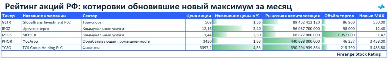 📈Рейтинг акций РФ: котировки обновившие новый максимум за месяц