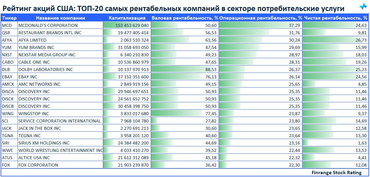 💪Рейтинг акций США: ТОП самых рентабельных компаний в секторе потребительские услуги🇺🇸
