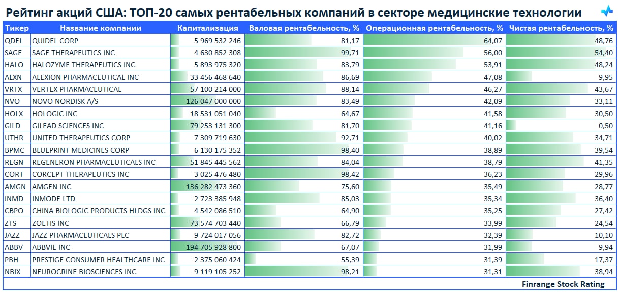 💪Рейтинг акций США: ТОП самых рентабельных компаний в секторе медицинские технологии🇺🇸