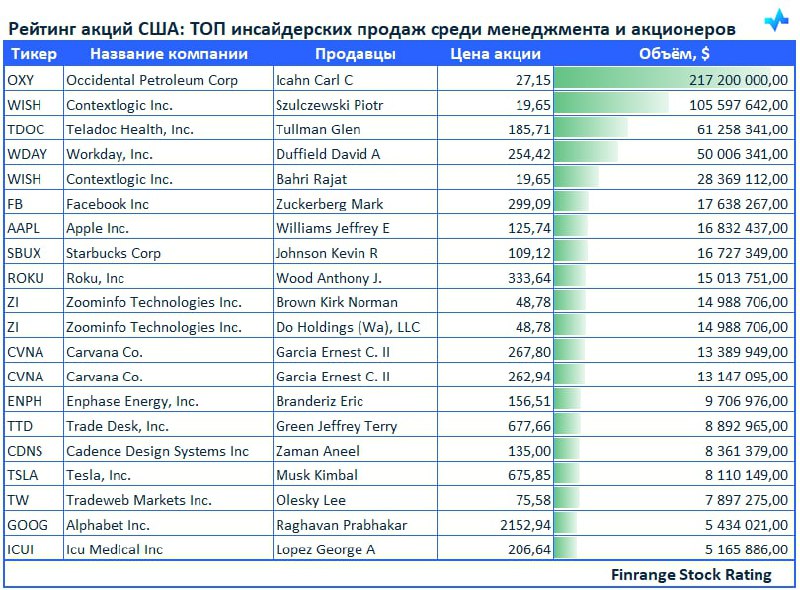 👔📉Рейтинг акций США: ТОП инсайдерских продаж среди менеджмента и акционеров🇺🇸