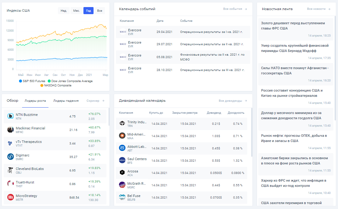 Следите за фондовым рынком c помощью нашего скринера акций и новостного агрегатора.