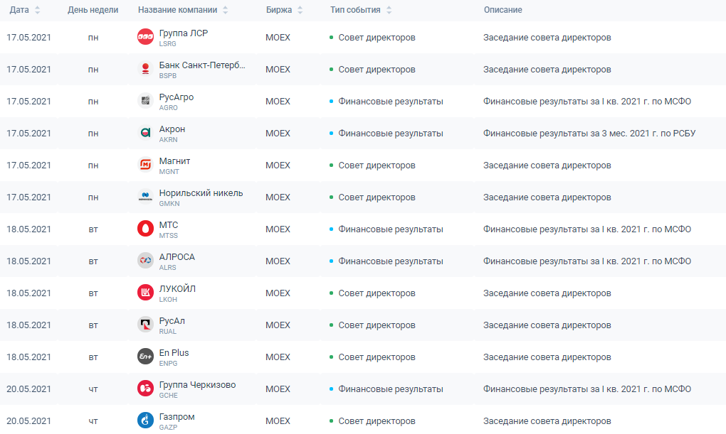 На этой неделе на столько много корпоративных событий, что у нас не все смогли вместиться на скриншот, поэтому заходим на сайт и смотрим календарь инвестора!