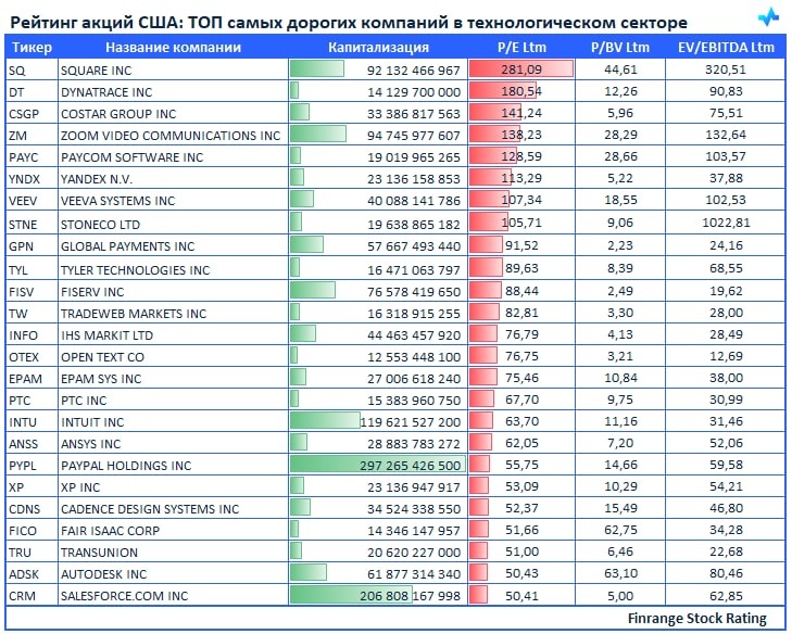 Американский рынок на исторических максимумах, пора посмотреть, кто самый дорогой в технологическом секторе на данный момент.