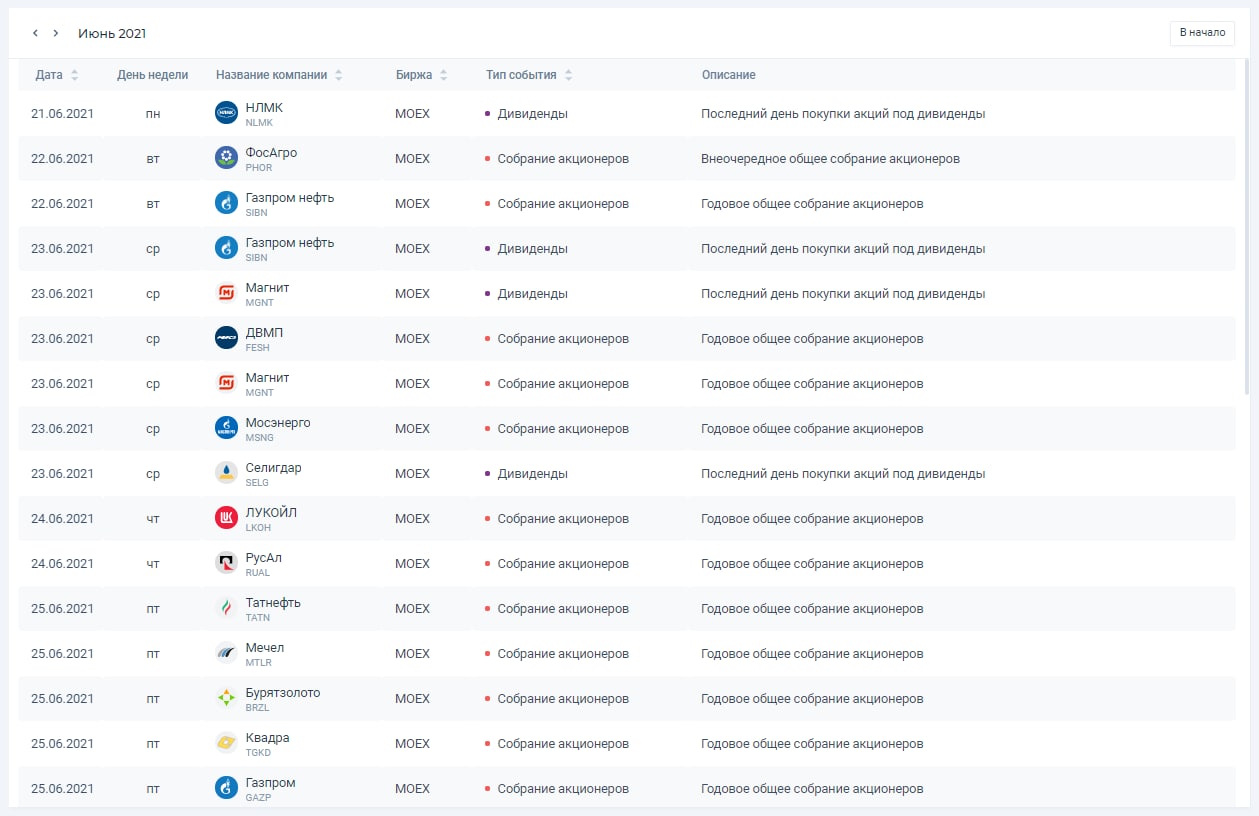 Чтобы увидеть полный список предстоящих событий, которые могут оказать влияние на движение акций, смотрите в календаре инвестора!