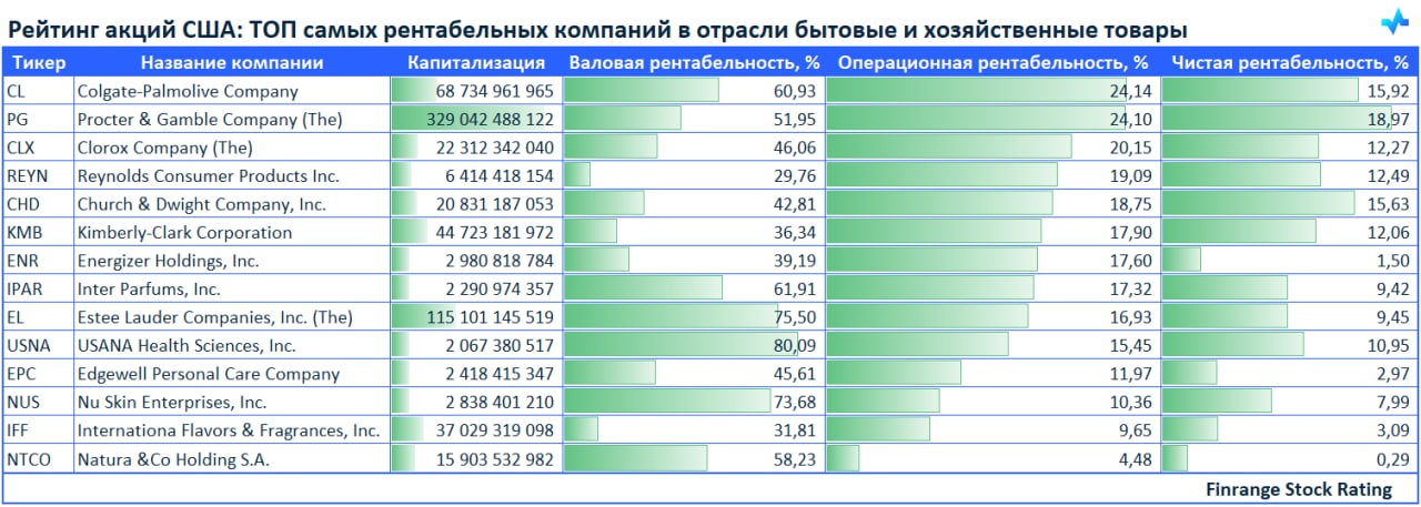 💪Рейтинг акций США: ТОП самых рентабельных компаний в отрасли бытовые и хозяйственные товары🇺🇸