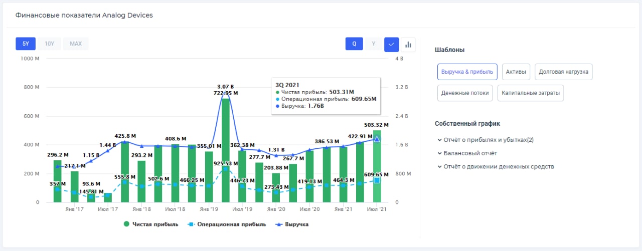 Analog Devices показала отличные результаты без каких-либо подводных камней. В III финансовом квартале 2021 г. произошёл прирост всех финансовых показателей, а компания заняла сильную позицию, так как на данный момент наблюдается благоприятная обстановка для дальнейшего развития компании. Руководство также возлагает большие надежды на дальнейшее будущее Analog Devices.