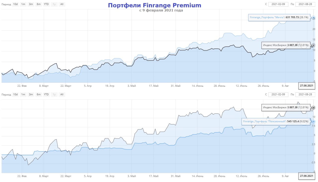 - Активный инвестиционный портфель на рынке РФ (с февраля 2021 г. +26,15%);