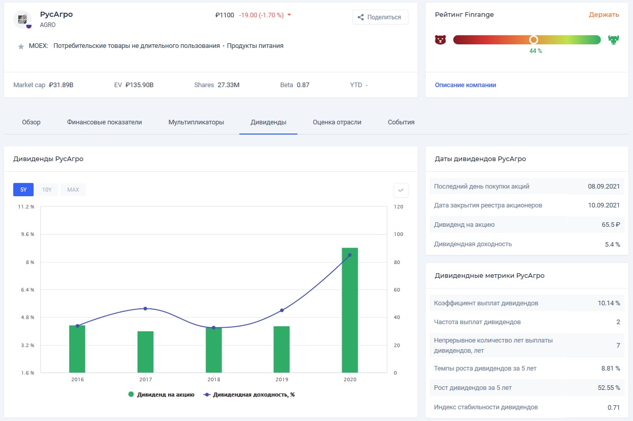 Дивиденды РусАгро