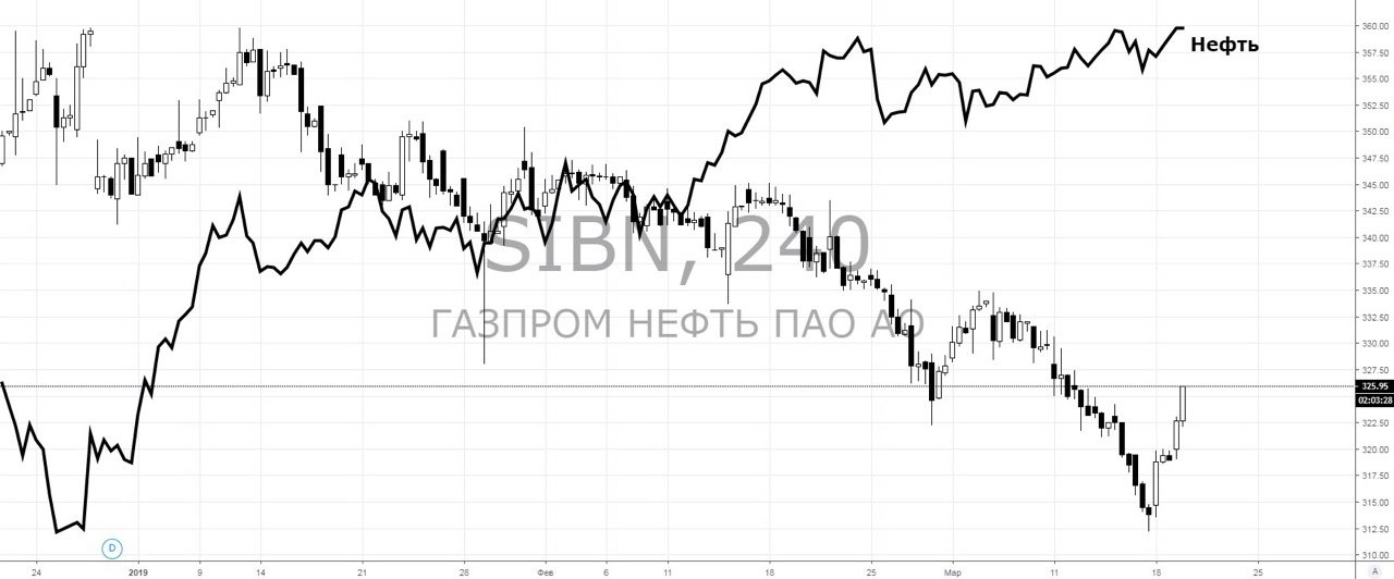 Котировки Газпром нефти за месяц снизить на 8%, когда в тоже время цены на нефть выросли почти на 10%. Когда такое расхождение - самое время покупать!