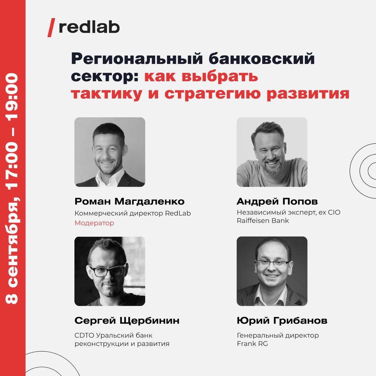 Напоминаем, что онлайн-митап RedLab «Региональный банковский сектор: как выбрать тактику и стратегию развития» стартует уже сегодня в 17:00!