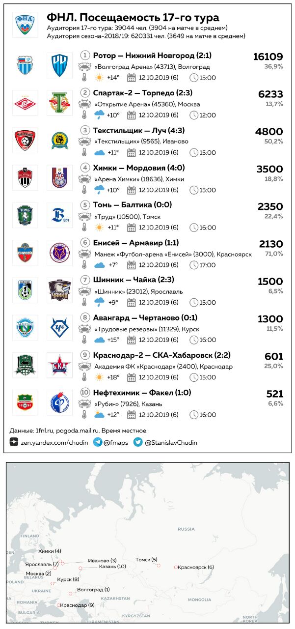 Мид-уик не порадовал зрительским интересом, что вполне логично. Даже на "Ротор" пришло в два раза меньше зрителей, чем обычно в среднем по сезону. Поэтому до сегодняшнего тура ждём гораздо более высокого зрительского интереса и такого же искрометного и результативного футбола, который был а среду. Тогда "Спартак-2" приложил "Факел" со счётом 7:2, так же было две ничьи по 2:2. Все результаты и статистика по теме в графике ниже.