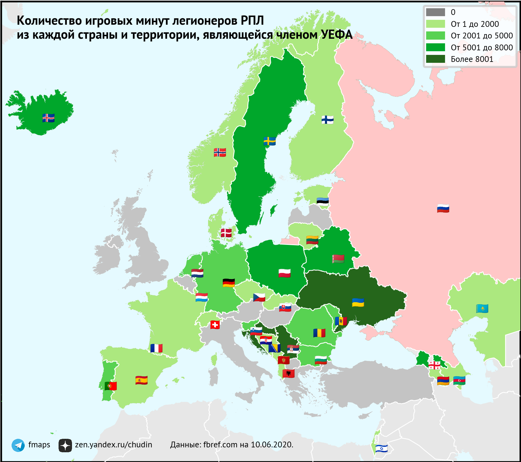 Другие карты, описывающие футбольный ландшафт Европы, которые были опубликованы на канале ранее: