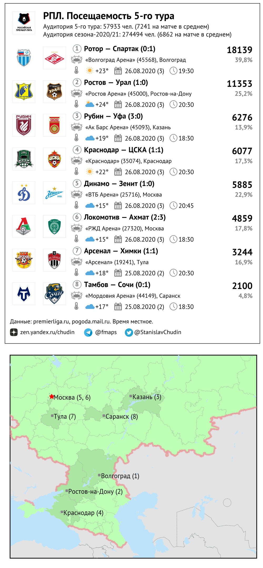 Перед началом нового тура премьер-лиги хотел бы сообщить вам новость: с сегодняшнего дня весь стрим по футбольной посещаемости я направляю на отдельный канал @football_attendance. Подписывайтесь!