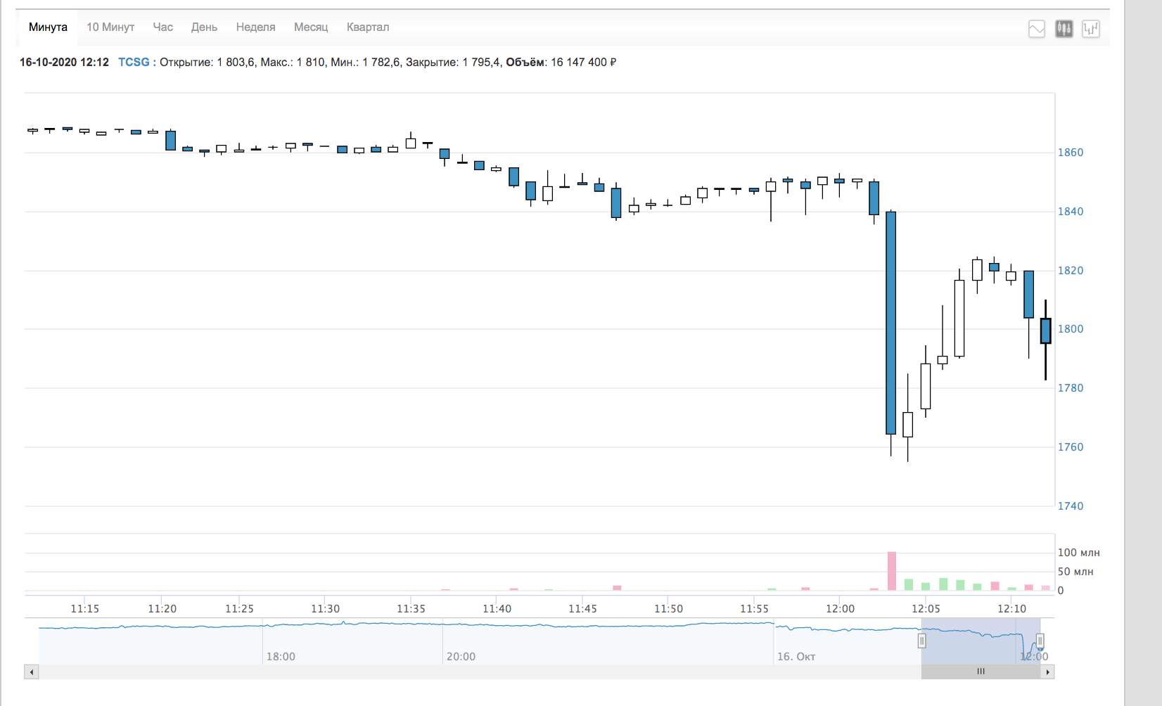 Бумаги TCS Group, материнской компании Тинькофф Банка, упали на 6,8% на Московской бирже на новости об отказе от сделки с «Яндексом»