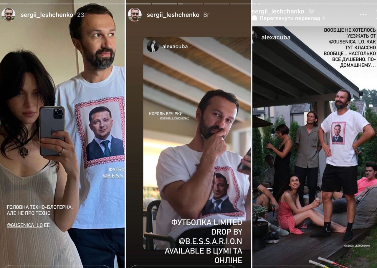 В цей самий час, радник керівника ОП Андрія Єрмака Сергій Лещенко відвідує вечірку, одягнувши футболку з портретом президента. Сергій Лещенко також все ще є членом наглядової ради Укрзалізниці, де отримує зарплату у розмірі 242 тисячі гривень на місяць – небачена сума для українців, багато з яких втратили роботу, дім, майно та змушені були почати життя з початку через напад Росії.