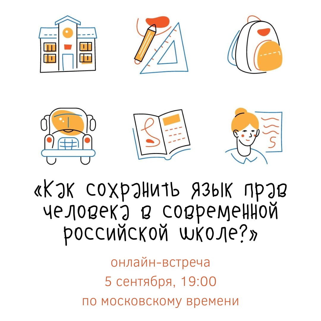 Уже через час, в 19:00 по московскому времени, мы начнём нашу онлайн-встречу: «Как сохранить язык прав человека в современной российской школе?»