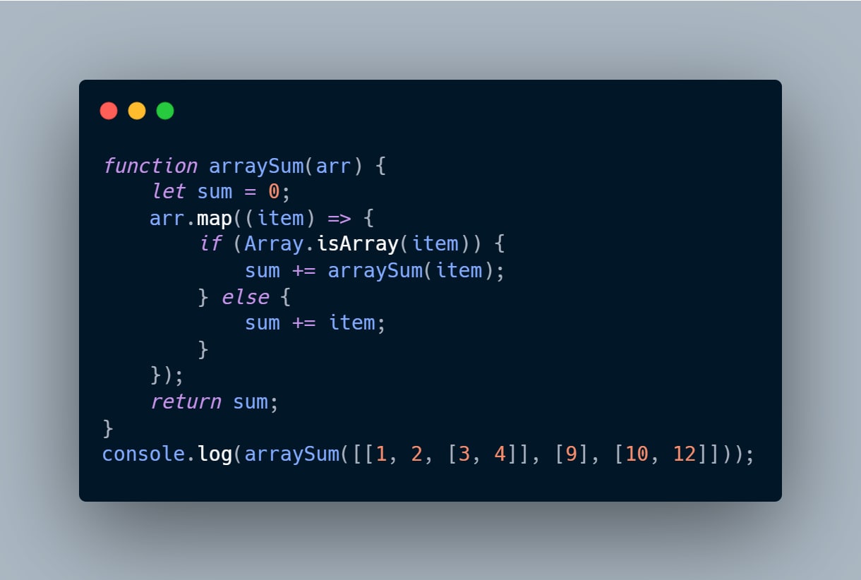 Как найти сумму элементов массива, если вложенность массива неизвестна?