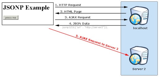 JSONP работает, отправляя запрос к серверу в другом домене через тег <noscript> и обычно с параметром запроса callback, например: