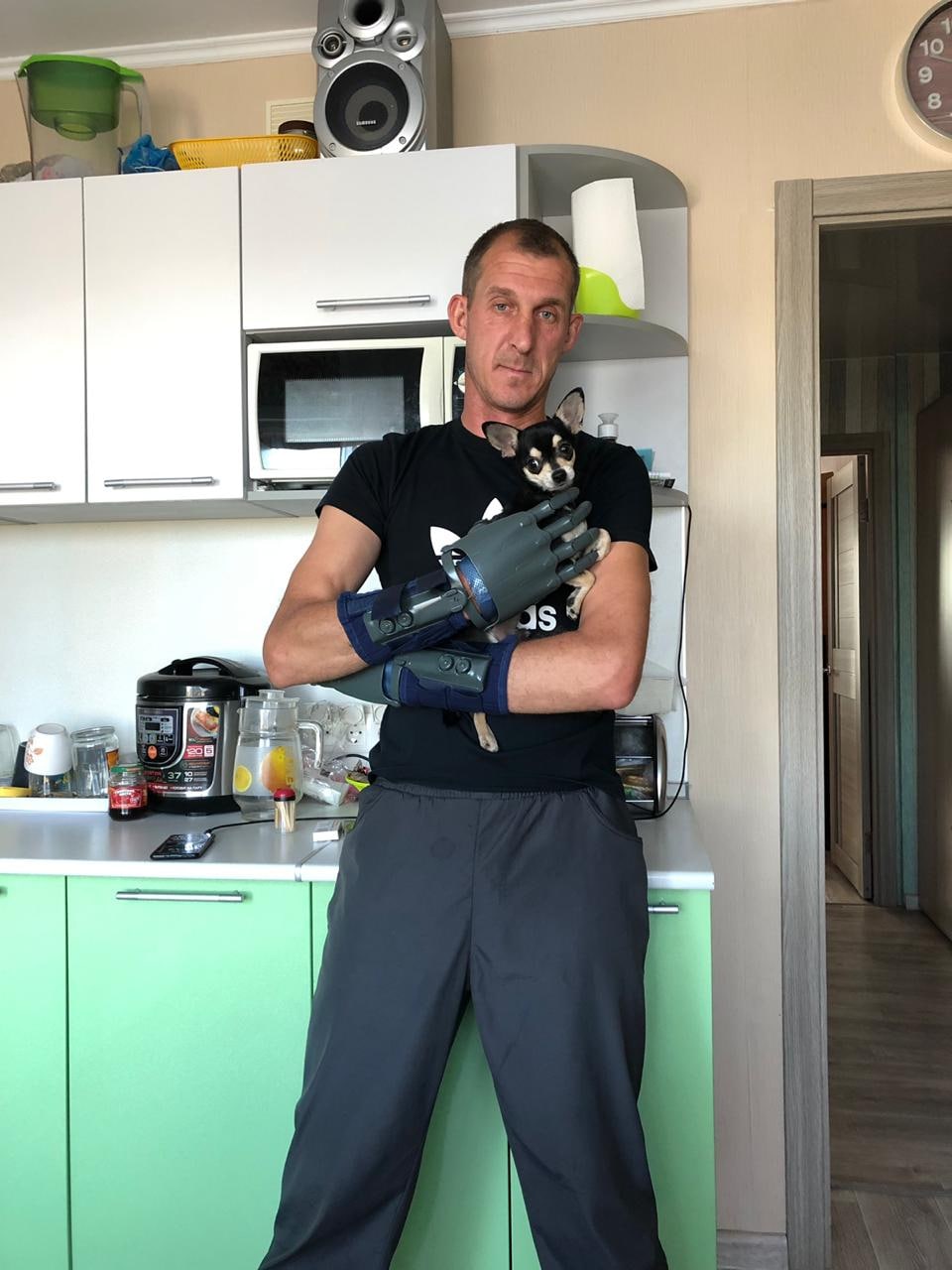 А потом уже мы и познакомились. Была сложность в том, что специалисты считали, что для управления протезом, Владимиру нужно провести реампутацию – удалить оставшиеся фаланги пальцев, иначе протезы будут большими и не функциональными.