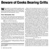 I'm disappointed that none of the crypto (or AI, or network state, or...) critics so far have used "beware of geeks bearing grifts" as a slogan.